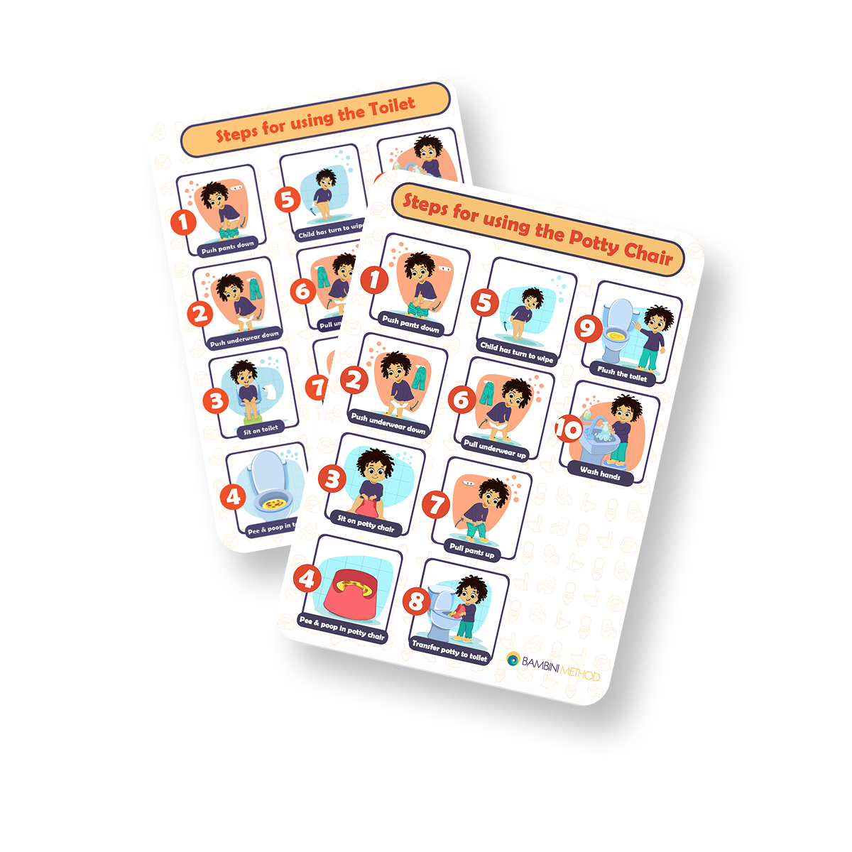 Printable step-by-step cards to help kids follow the toilet routine with ease and independence.